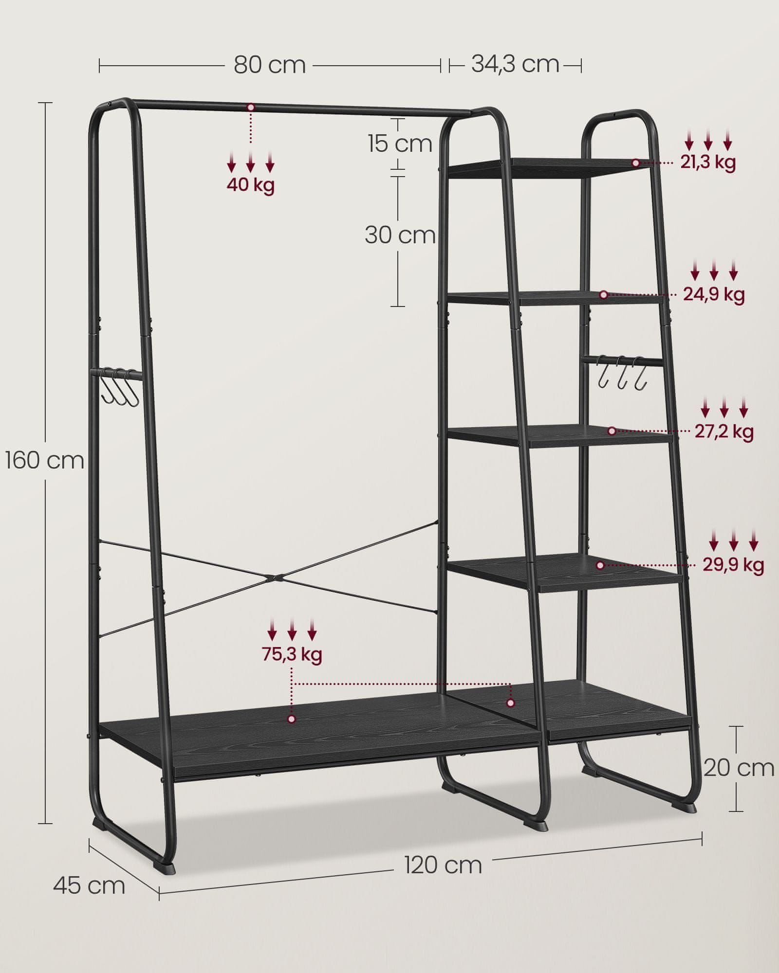 Songmics Stalak za odjeću 5 razina 45x120x160 cm smeđe crni