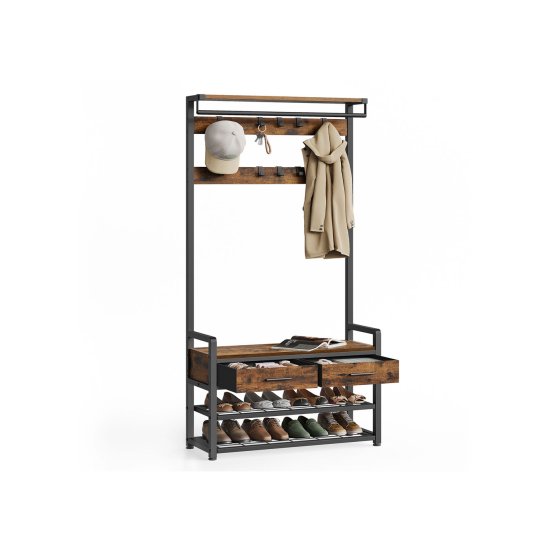 Songmics Vješalica za kapute s klupom za cipele 30x804x1816 cm smeđa