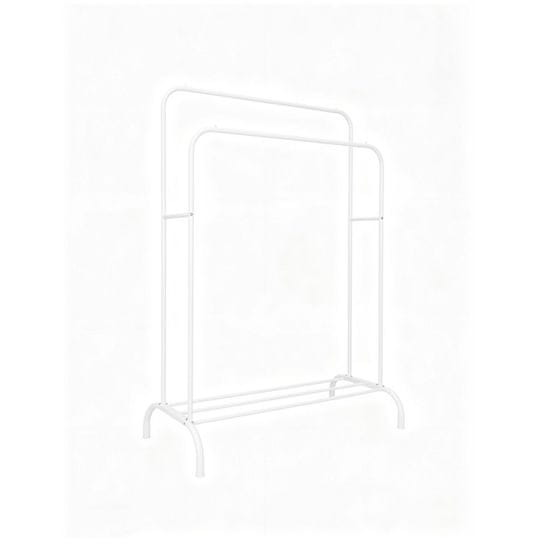 Ovaj dvostruki metalni stalak za odjeću nudi dodatnu pohranu s dvije šipke za sigurno vješanje i donjom policom za cipele ili torbe. S bočnim šipkama za dodatke, ovaj elegantan i funkcionalan stalak je savršen za učinkovito organiziranje spavaćih soba, hodnika ili garderoba.