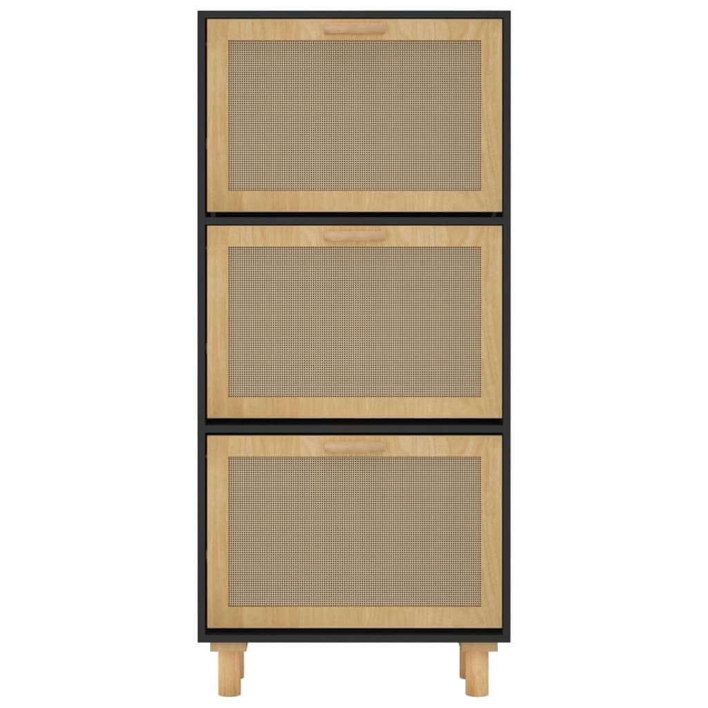 Vidaxl Ormarić za cipele crni 52 x 25 x 115 cm drvo i prirodni ratan
