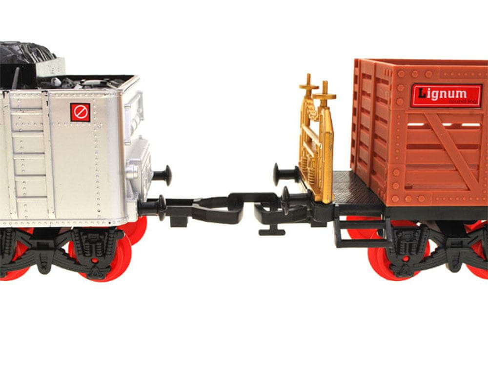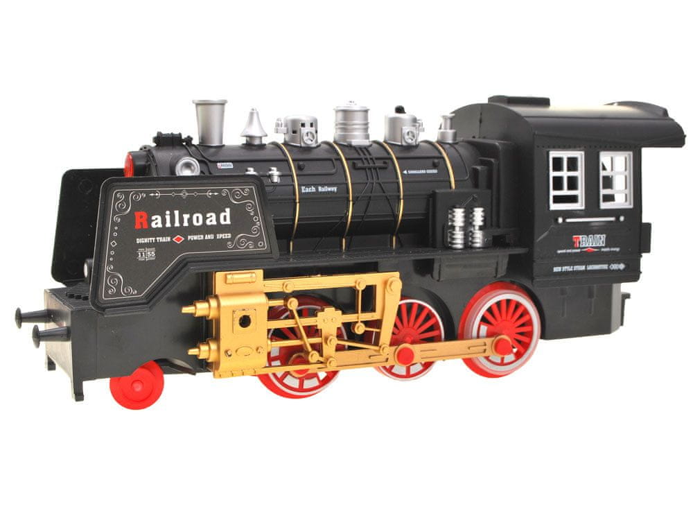 Vlak je pažljivo izrađen s naglaskom na najmanje detalje i pokreće ga klasična parna lokomotiva koja tijekom vožnje ispušta zvuk vozeće lokomotive. Naša lokomotiva dodatno svijetli signalnim svjetlom na prednjoj strani, a kada se spremnik napuni vodom, iz dimnjaka se diže dim, kako i priliči starinskoj parnoj lokomotivi. S druge strane, tijekom vožnje ispušta zvukove koji su tipični za zviždanje, zveckanje kotača po tračnicama, zvonjenje zvona itd., kao kod vlaka koji brzo vozi. zvukovi vlaka. Ova prekrasna modelna željeznica s vagonima zasigurno će oduševiti svakog početnika ljubitelja modelne željeznice.