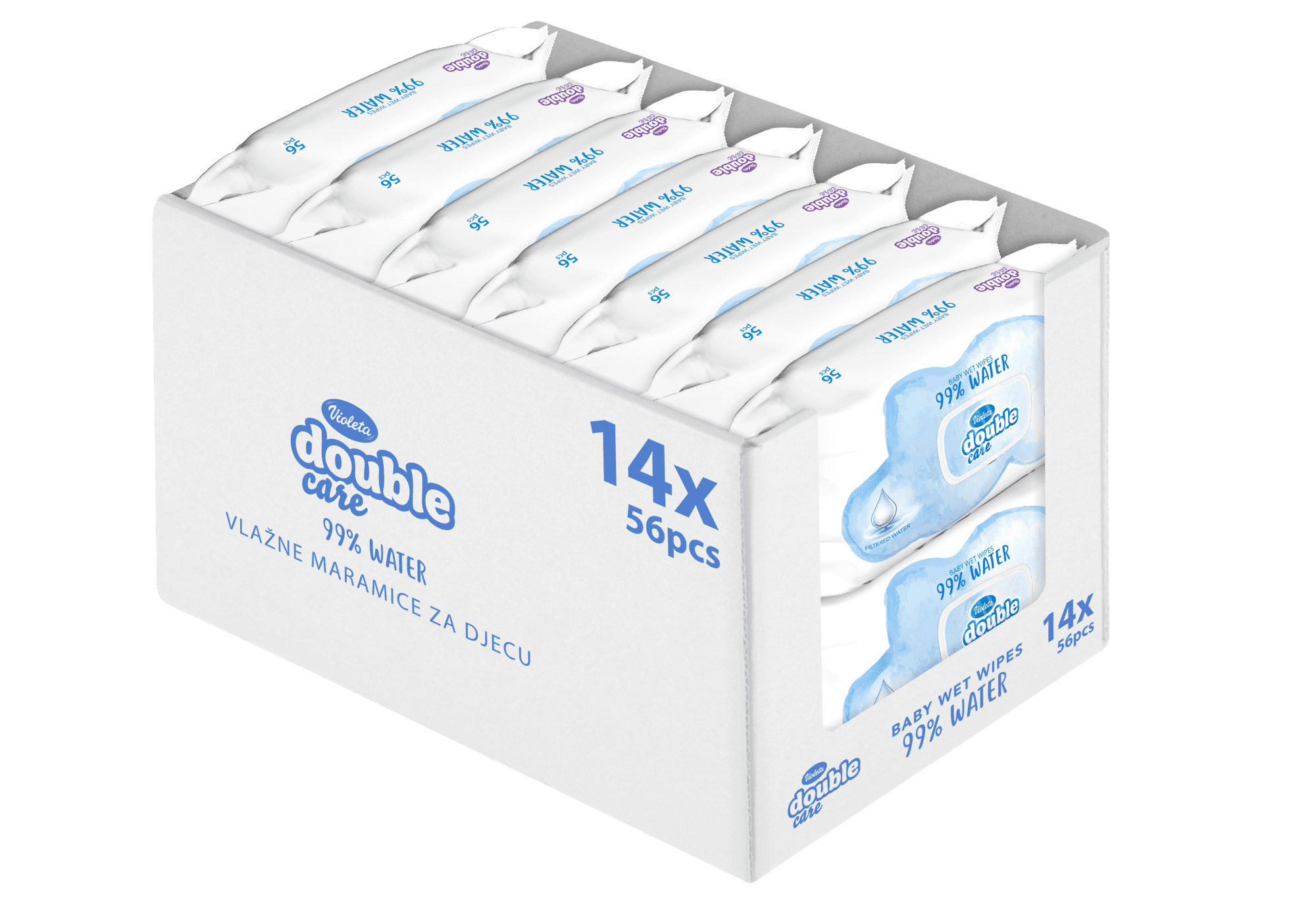Violeta Water Care dječje maramice sadrže čak 99% vode pročišćene procesom reverzne osmoze. U pakiranju je 14 paketića.