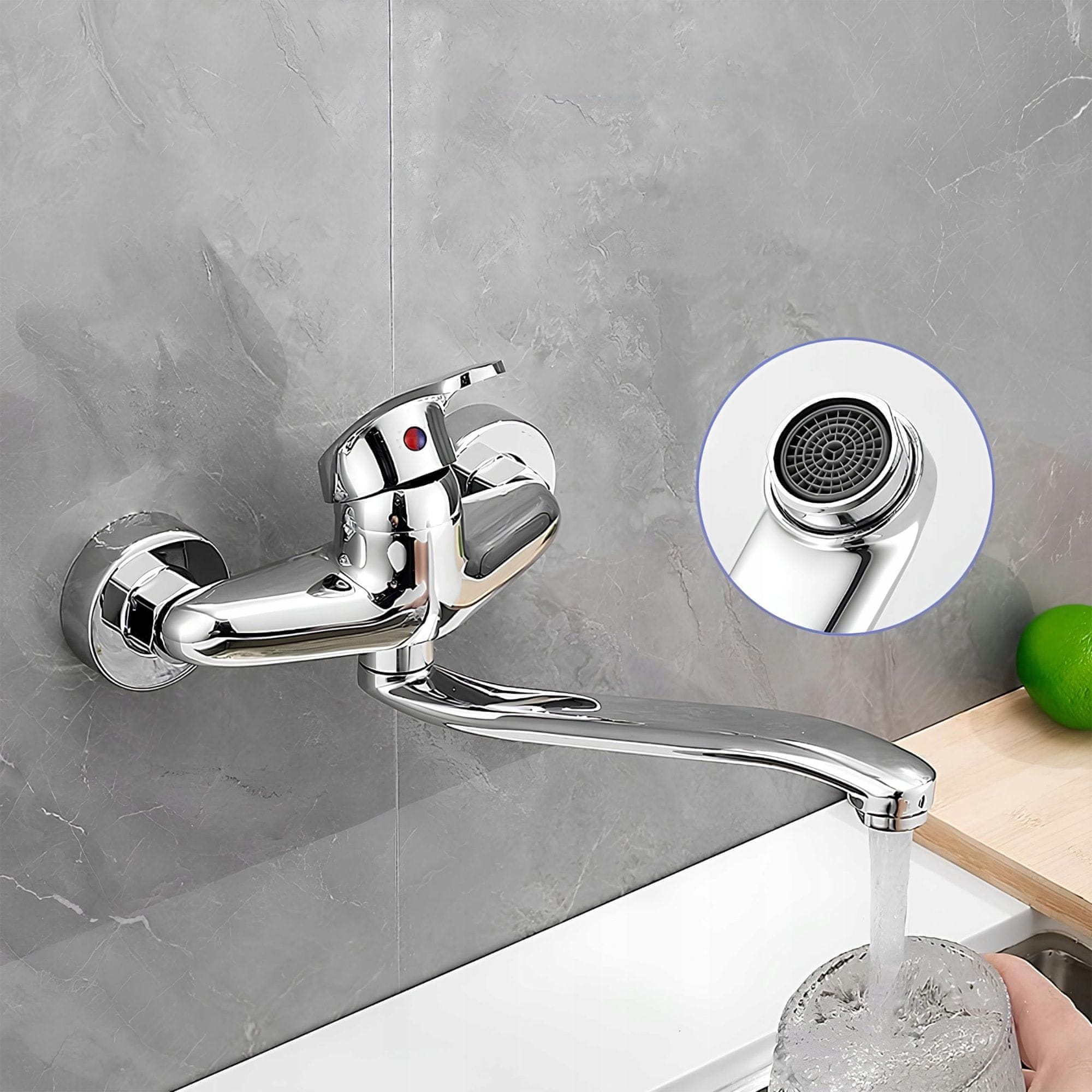 Ova zidna miješalica za umivaonik s okretnim izljevom i perlatorom kombinira funkcionalnost s modernim dizajnom. Dugi izljev osigurava jednostavnost korištenja, dok okretna funkcija pojednostavljuje svakodnevno pranje ruku i posuđa. Savršena za svaku kupaonicu, kombinira praktičnost s elegancijom.