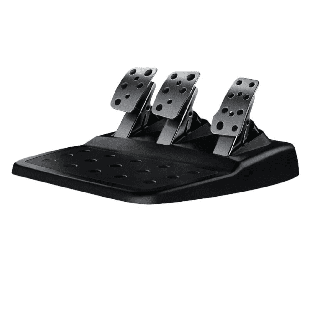 Pedalna jedinica uključuje tri odvojene pedale – gas, kočnicu i spojku. Kočnica je nelinearna za realističan otpor pri pritisku. Baza ima gumene nožice i držače za tepih koji sprječavaju pomicanje tijekom vožnje.