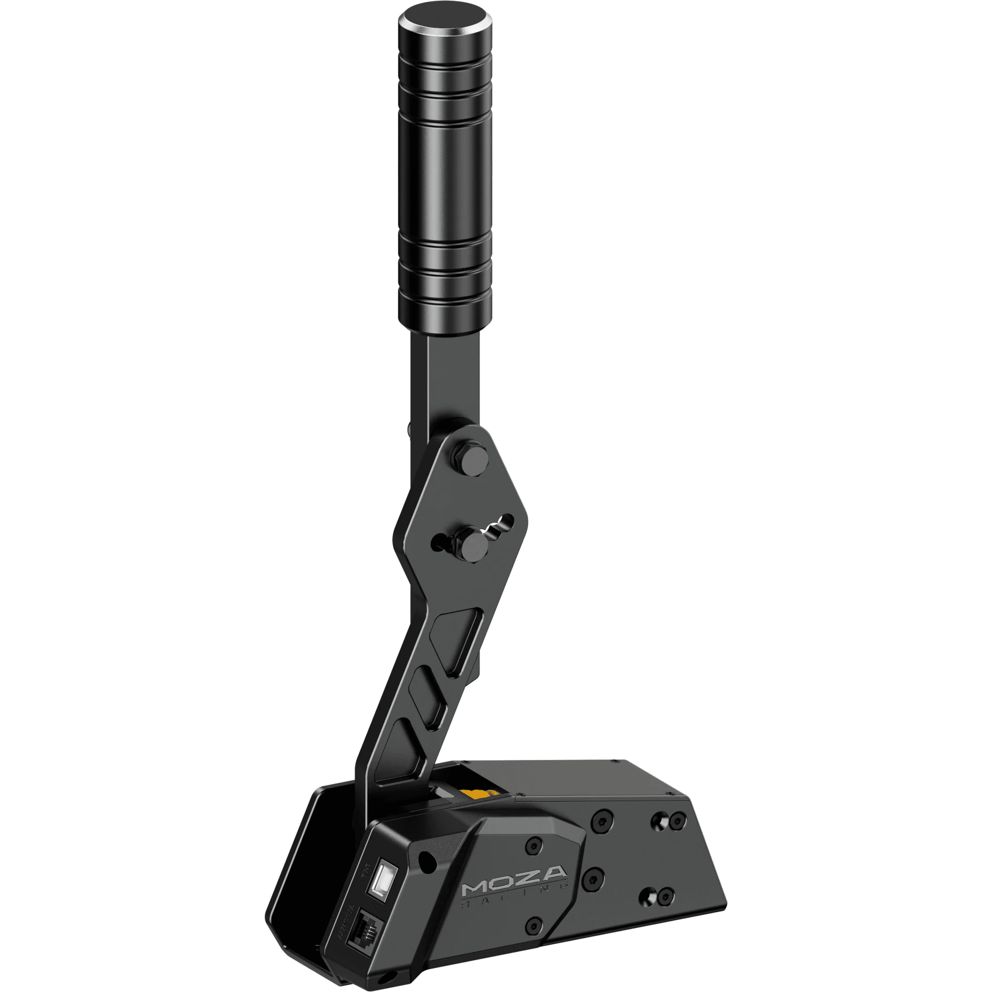 MOZA HBP ručna kočnica može se spojiti izravno s PC-jem preko USB-a ili s osnovnom jedinicom putem sučelja za ručnu kočnicu. Cijela kućišta izrađena su od eloksiranog aluminija kvalitete za zrakoplovstvo, obrađena CNC-om, što čini uređaj otpornim na habanje, izdržljivim i dugotrajnim. HBP ručna kočnica opremljena je beskontaktnim, visokopreciznim 16-bitnim senzorom kuta koji osigurava dug, bezbrižan vijek trajanja. Ručka koja se može montirati horizontalno ili vertikalno simulira cestovna i trkaća vozila. Kut ručke može se prilagoditi osobnim potrebama. Povratna sila i hod uređaja kočnice mogu se prilagoditi zamjenom opruge, a također se može prilagoditi i pozicija zaustavljanja. HBP ručna kočnica je ergonomski dizajnirana i estetski dotjerana, lako se montira na većinu trkaćih postavki. Opcionalni nosač za stol (nije uključen) idealan je za korisnike koji nemaju cijeli trkaći set.