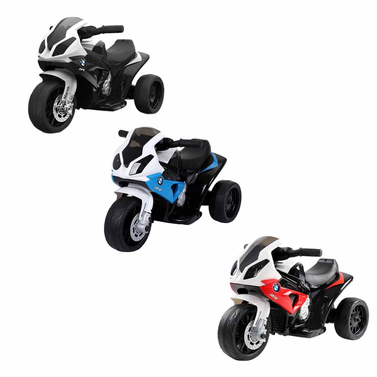 Vrsta: motocikl na akumulator. Marka: BMW, licenciran proizvod. U setu: 1× Aku motor, bez daljinskog. Značajke: 3 kotača, vožnja naprijed, ne može unatrag, s prednjim svjetlom, s glazbom. Nosivost: 20 kg. Motor: 1× 390W. Punjiva baterija: 6V500MA. Brzina: cca. do 3 km/h. Vrijeme vožnje: cca.