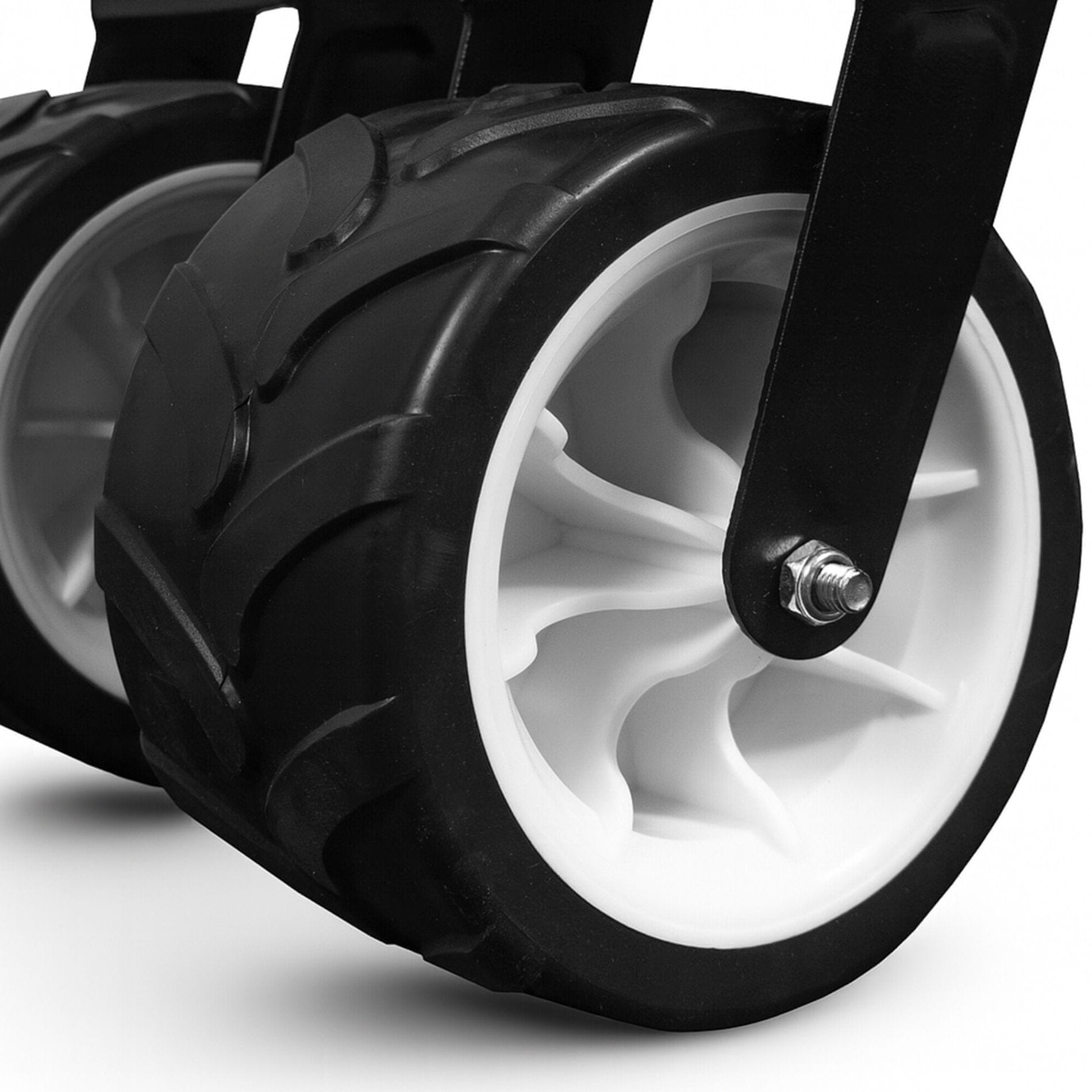 Zahvaljujući velikom prostoru za teret, u kolica stane sve potrebno i prevest ćete ih na izdržljivim plastičnim kotačima.