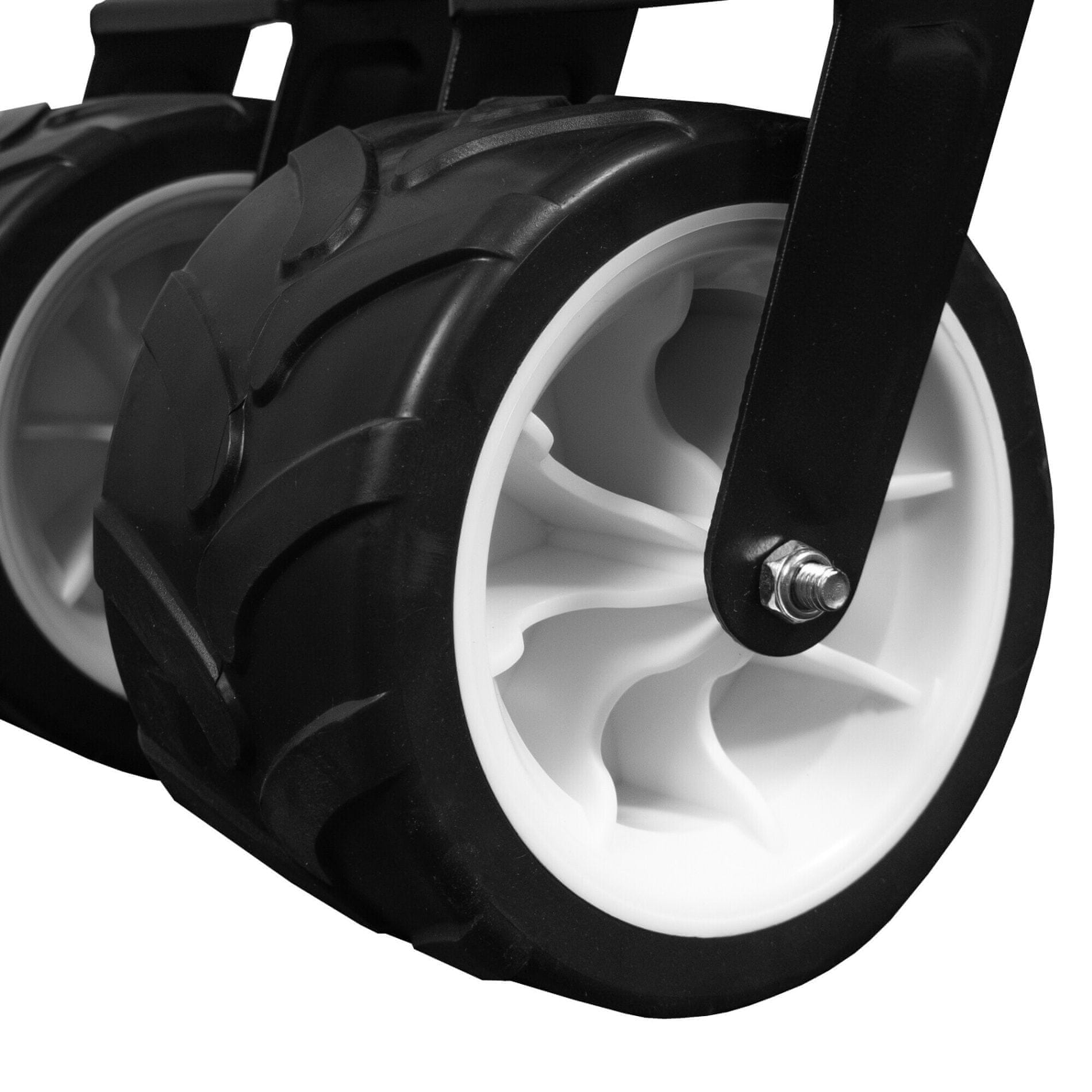Zahvaljujući velikom prostoru za teret, u kolica stane sve potrebno, a prevest ćete ih na izuzetno izdržljivim plastičnim kotačima, koji će dobro poslužiti i pri vožnji po terenu.