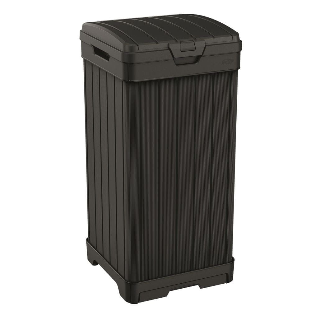 Praktičan i stilizirani koš za otpatke. Keter Baltimore crne boje s kapacitetom 125 l je izrađen od plastike otporne na vremenske utjecaje i UV zrake. Dvostruki poklopac omogućuje čvrsto zatvaranje i namještanje vreće za smeće. Posebno oblikovan uklonjivi pladanj olakšava čišćenje.