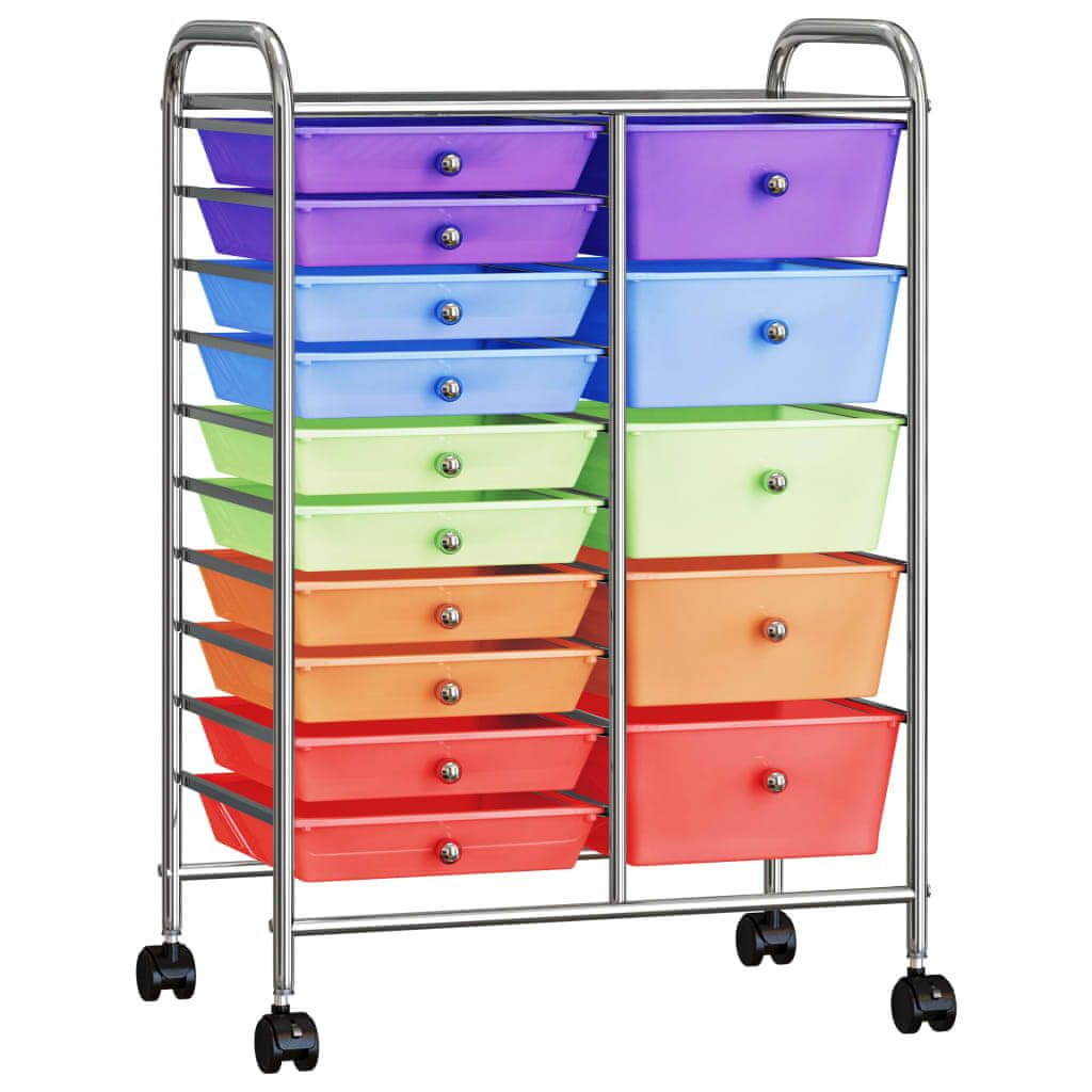 Vidaxl XXL pokretna kolica za pohranu s 15 ladica raznobojna plastična