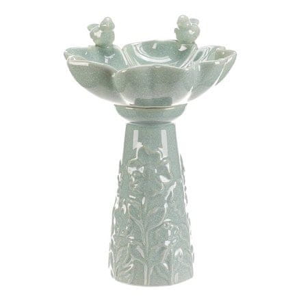 Naziv: Hranilica/pojilica – keramička, cvijet s pticama, stojeća, mentol