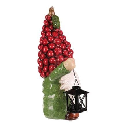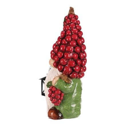 Magnezijeva figurica u obliku patuljka s malinastim šeširom u crvenoj boji nadopunjena je malim lampionom dizajniranim za čajnu svijeću, što stvara ugodnu atmosferu. Detaljno tijelo i odvažne boje naglašavaju dekorativni karakter ovog dodatka. Figurica se može postaviti na policu, komodu ili kao dio tematskog ukrasa u interijeru. Pogodna je za korištenje s malim svijećama, što će istaknuti njezin dizajn i dodati toplo svjetlo.