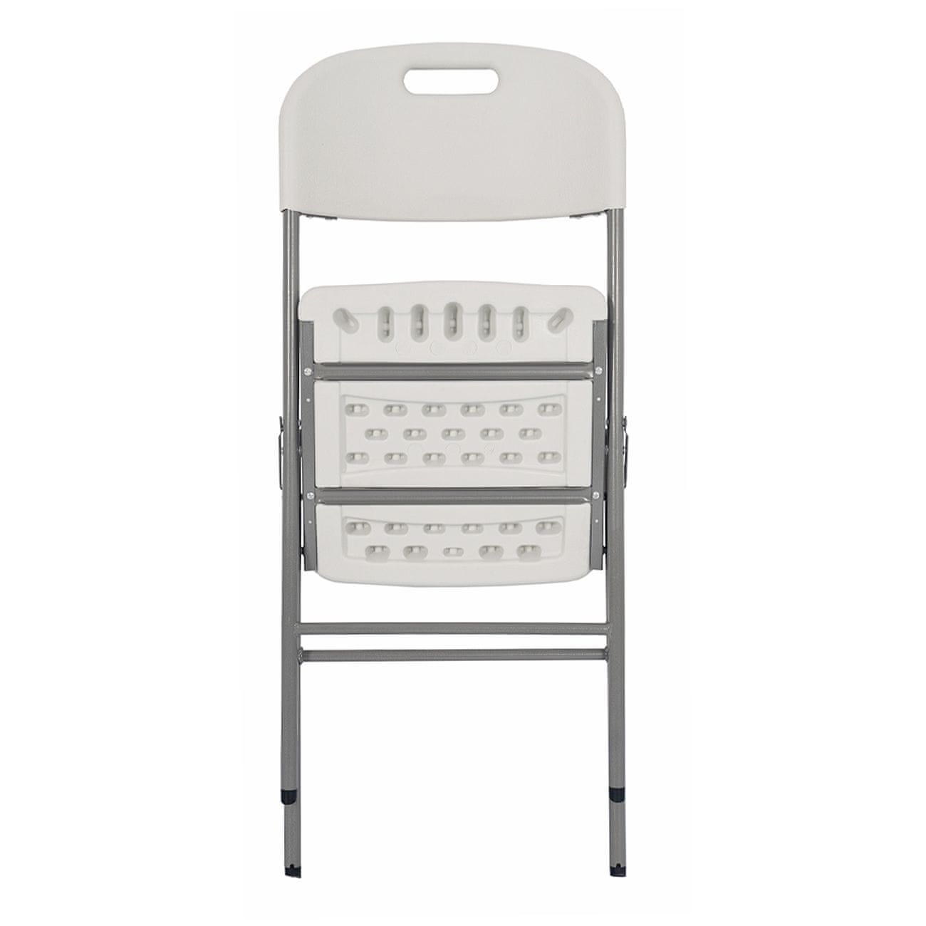 Sklopiva stolica od drvenog zrna. Veličina proizvoda: 46×55×83 cm. Veličina preklapanja: 109×46×17 cm. Materijal: HDPE. Okvir: čelik FI 25×1 mm + praškasti premaz. Boja: ploča: bijela, okvir: sivi. Neto težina: 4.2kg.