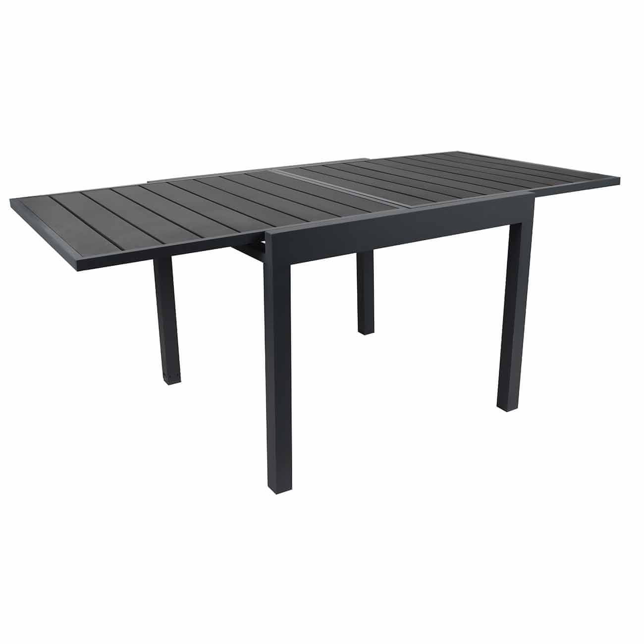 Rasklopivi vrtni stol. Dimenzije: 75×80×80cm. Dimenzije sklopivog stola 80cm, nakon sto se razvuce 160cm. Maksimalna nosivost: 140kg. Cijeli opis