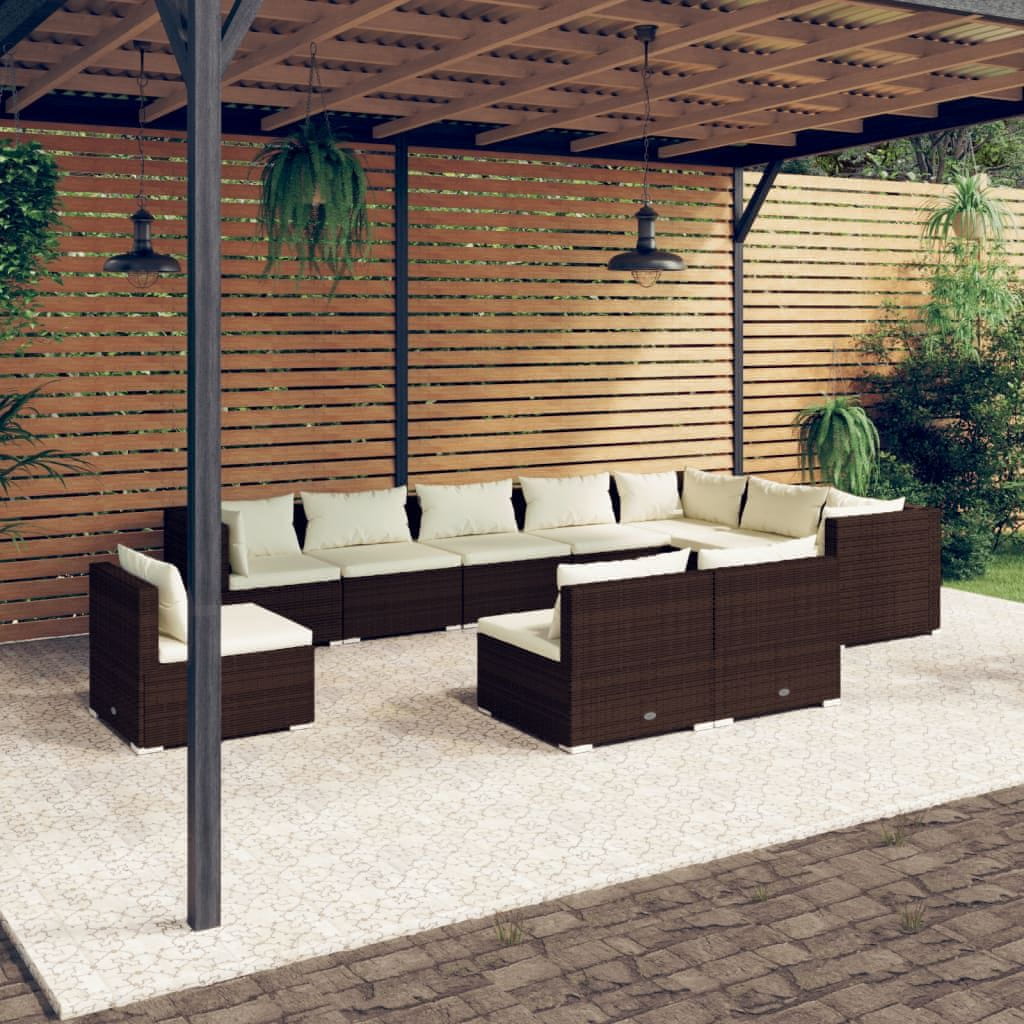 Vidaxl 10-dijelna vrtna garnitura od poliratana s jastucima smeđa