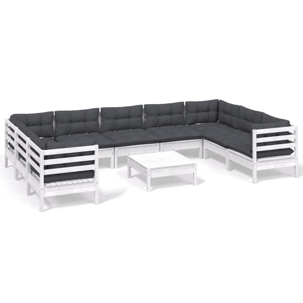 Vidaxl 10-dijelna vrtna garnitura od borovine s jastucima bijela