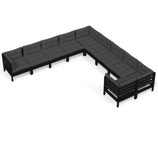 Vidaxl 10-dijelna vrtna garnitura od borovine s jastucima crna