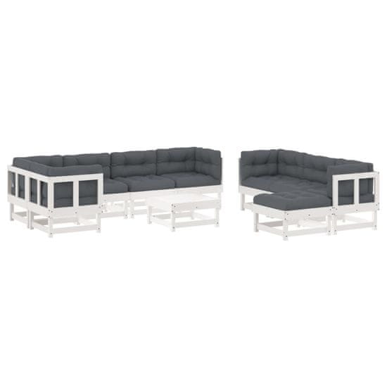 Vidaxl 10-dijelna vrtna garnitura s jastucima bijela od masivnog drva