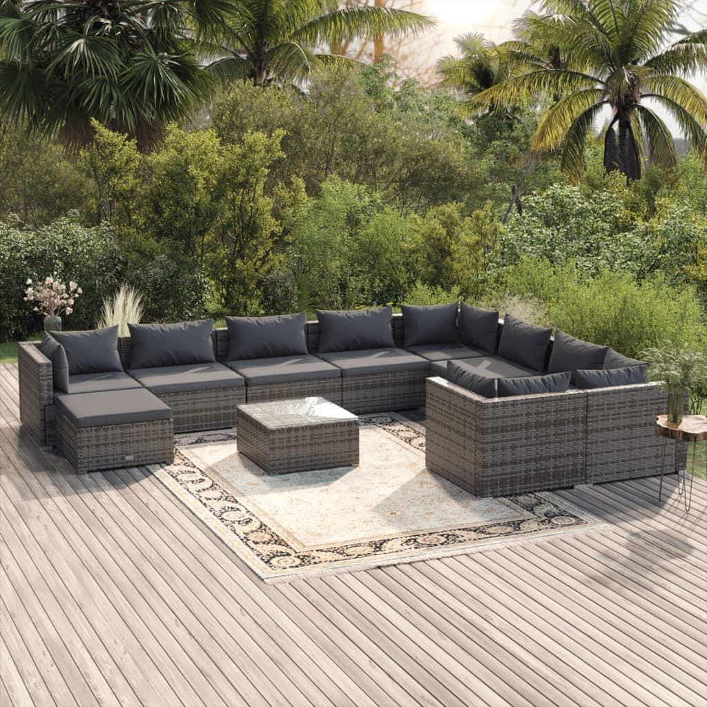 Vidaxl 11-dijelna vrtna garnitura od poliratana s jastucima siva