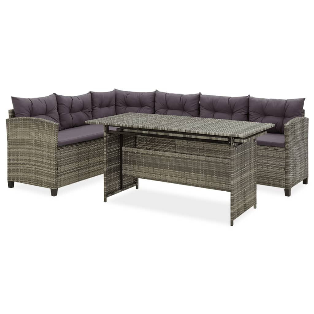 Vidaxl 2-dijelna vrtna garnitura od poliratana s jastucima siva