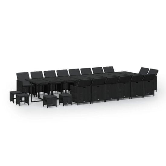 Vidaxl 21-dijelni vrtni blagovaonski set s jastucima poliratan crni