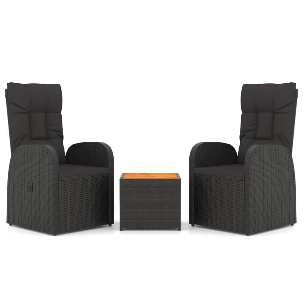 Vidaxl 3-dijelna vrtna garnitura crna od poliratana i drva bagrema