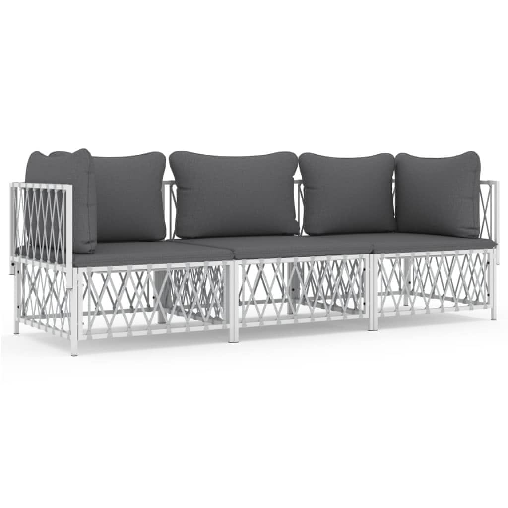 Vidaxl 3-dijelna vrtna garnitura s jastucima bijela čelična