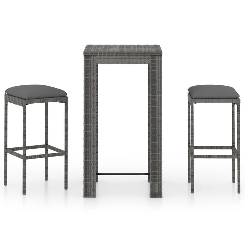Vidaxl 3-dijelni vrtni barski set od poliratana s jastucima sivi