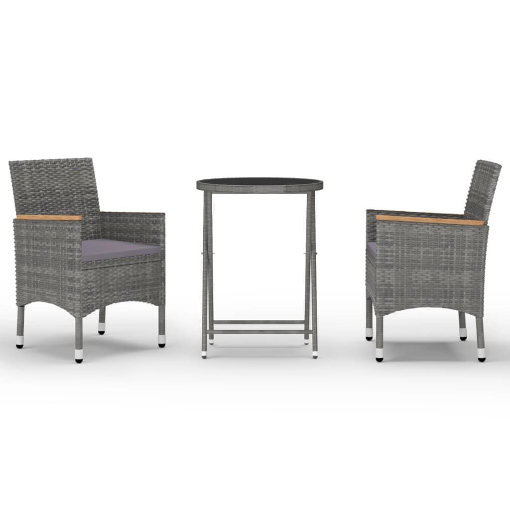 Vidaxl 3-dijelni vrtni bistro set od poliratana i kaljenog stakla sivi