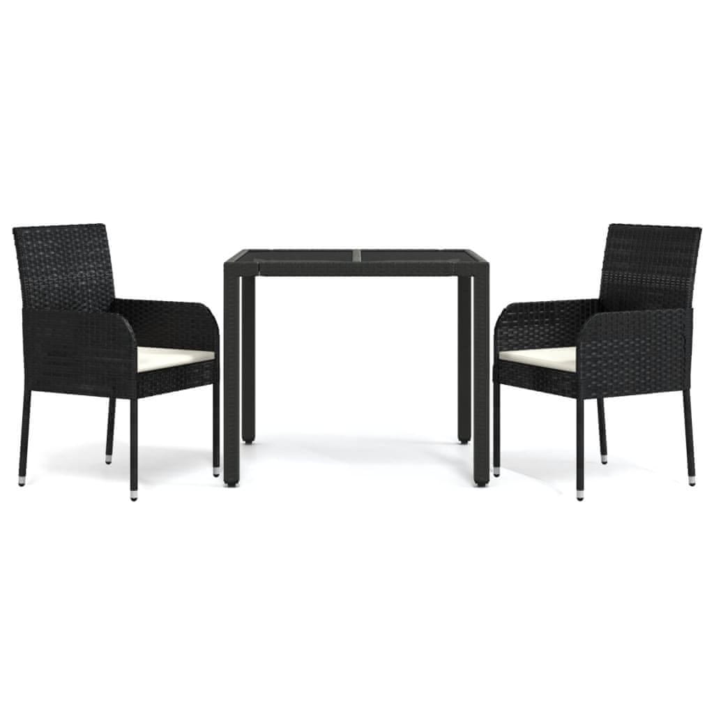 Vidaxl 3-dijelni vrtni blagovaonski set s jastucima od poliratana crni