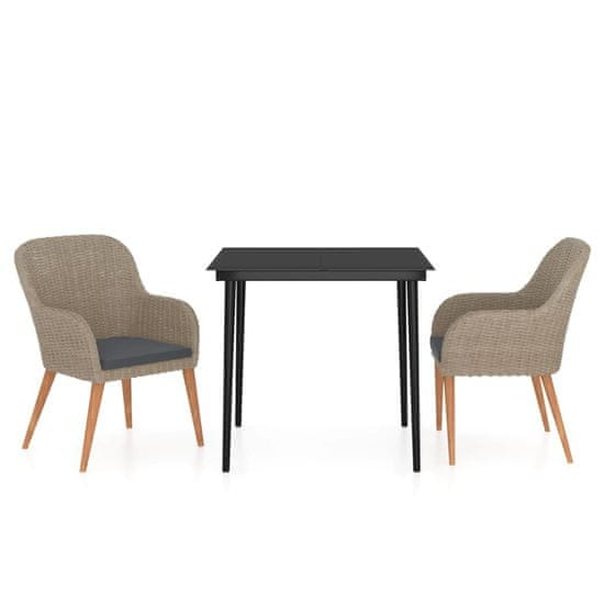 Vidaxl 3-dijelni vrtni blagovaonski set s jastucima smeđi
