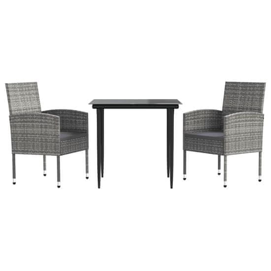 Vidaxl 3-dijelni vrtni blagovaonski set sivo-crni poliratan i čelik