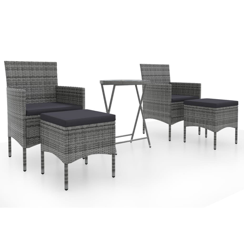 Vidaxl 5-dijelni vrtni bistro set od poliratana i kaljenog stakla sivi