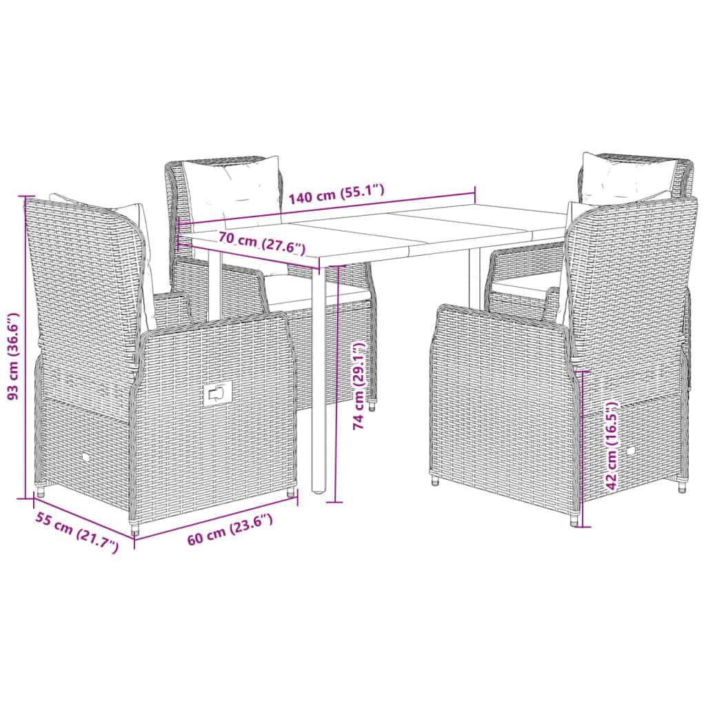Vidaxl 5-dijelni vrtni blagovaonski set od poliratana s jastucima sivi