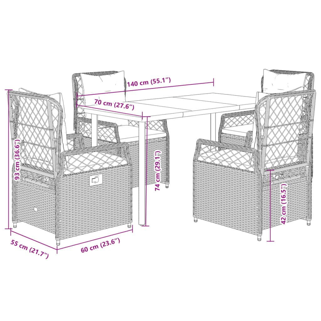 Vidaxl 5-dijelni vrtni blagovaonski set s jastucima od poliratana crni