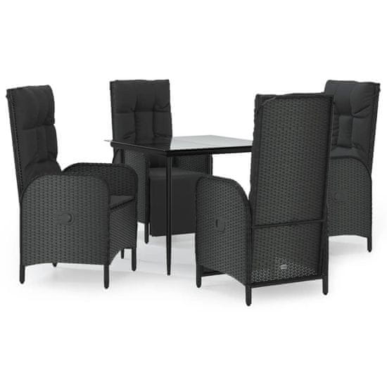 Vidaxl 5-dijelni vrtni blagovaonski set s jastucima od poliratana crni