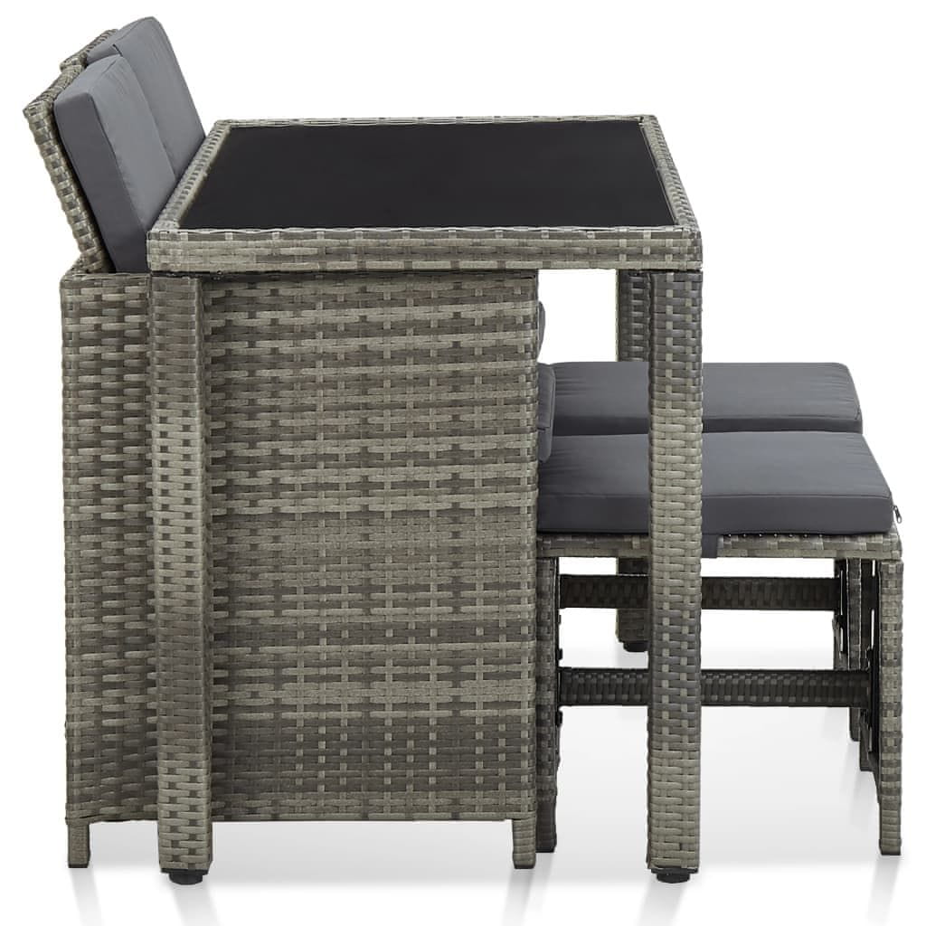 Vidaxl 5-dijelni vrtni blagovaonski set od poliratana s jastucima sivi