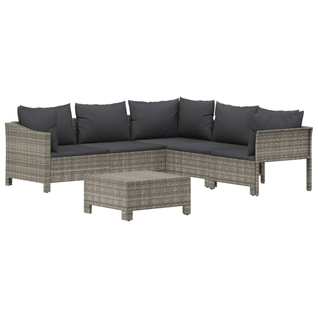 Vidaxl 6-dijelna vrtna garnitura od poliratana s jastucima siva