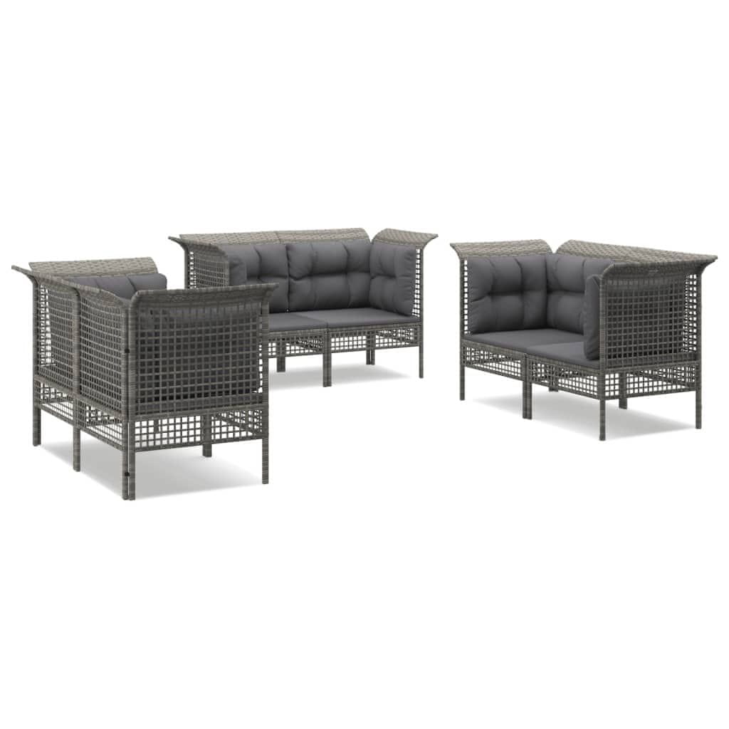 Vidaxl 6-dijelna vrtna garnitura od poliratana s jastucima siva