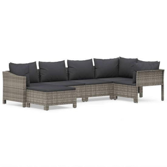 Vidaxl 6-dijelna vrtna garnitura od poliratana s jastucima siva