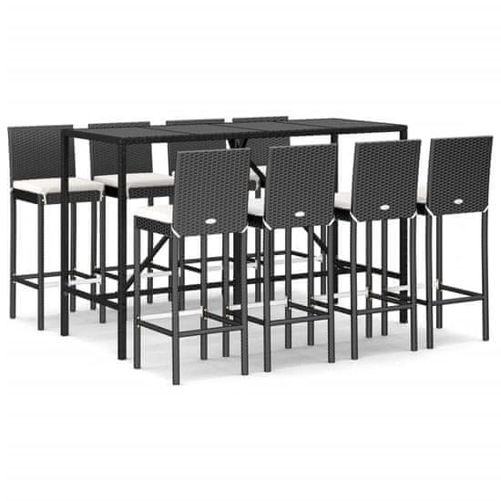 Vidaxl 9-dijelni vrtni barski set s jastucima crni od poliratana