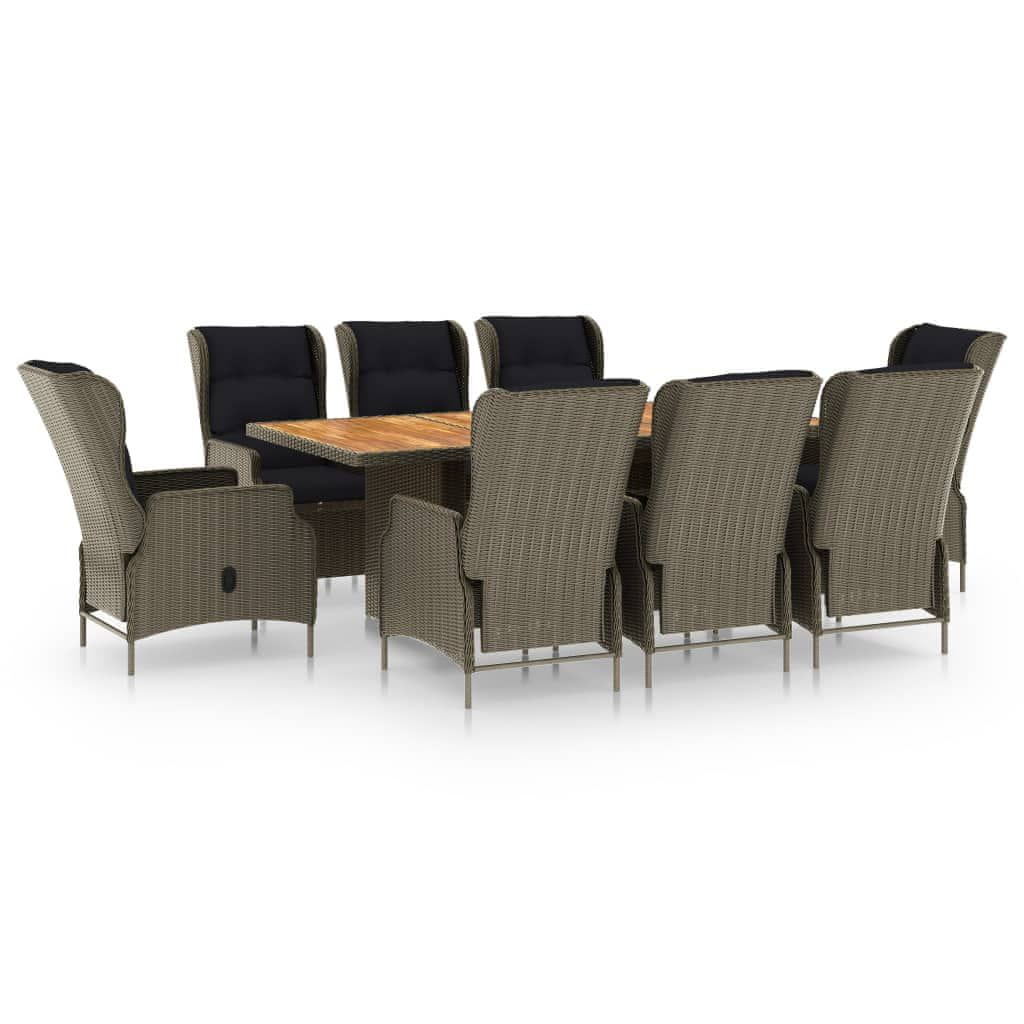 Vidaxl 9-dijelni vrtni blagovaonski set od poliratana smeđi