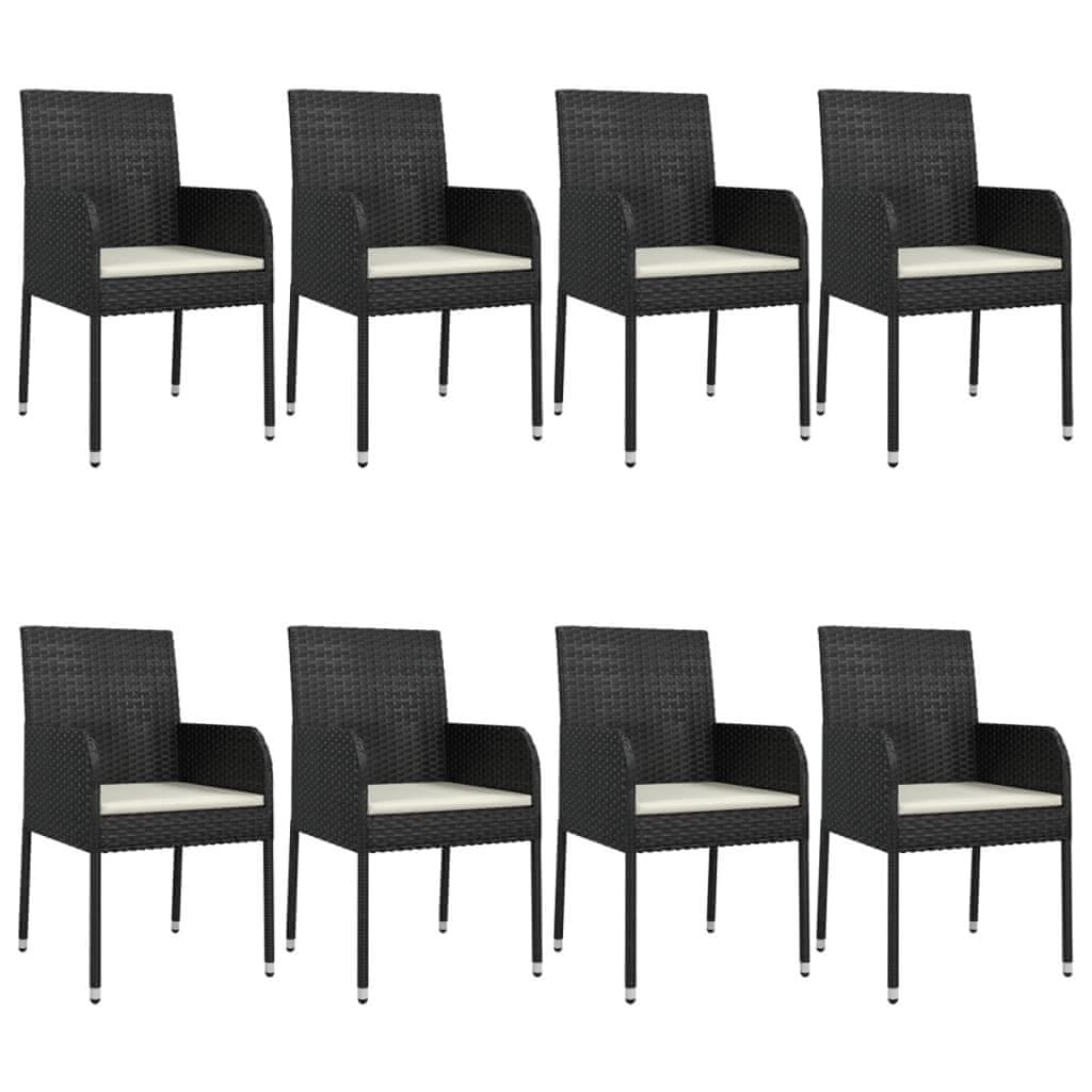 Vidaxl 9-dijelni vrtni blagovaonski set s jastucima crni od poliratana