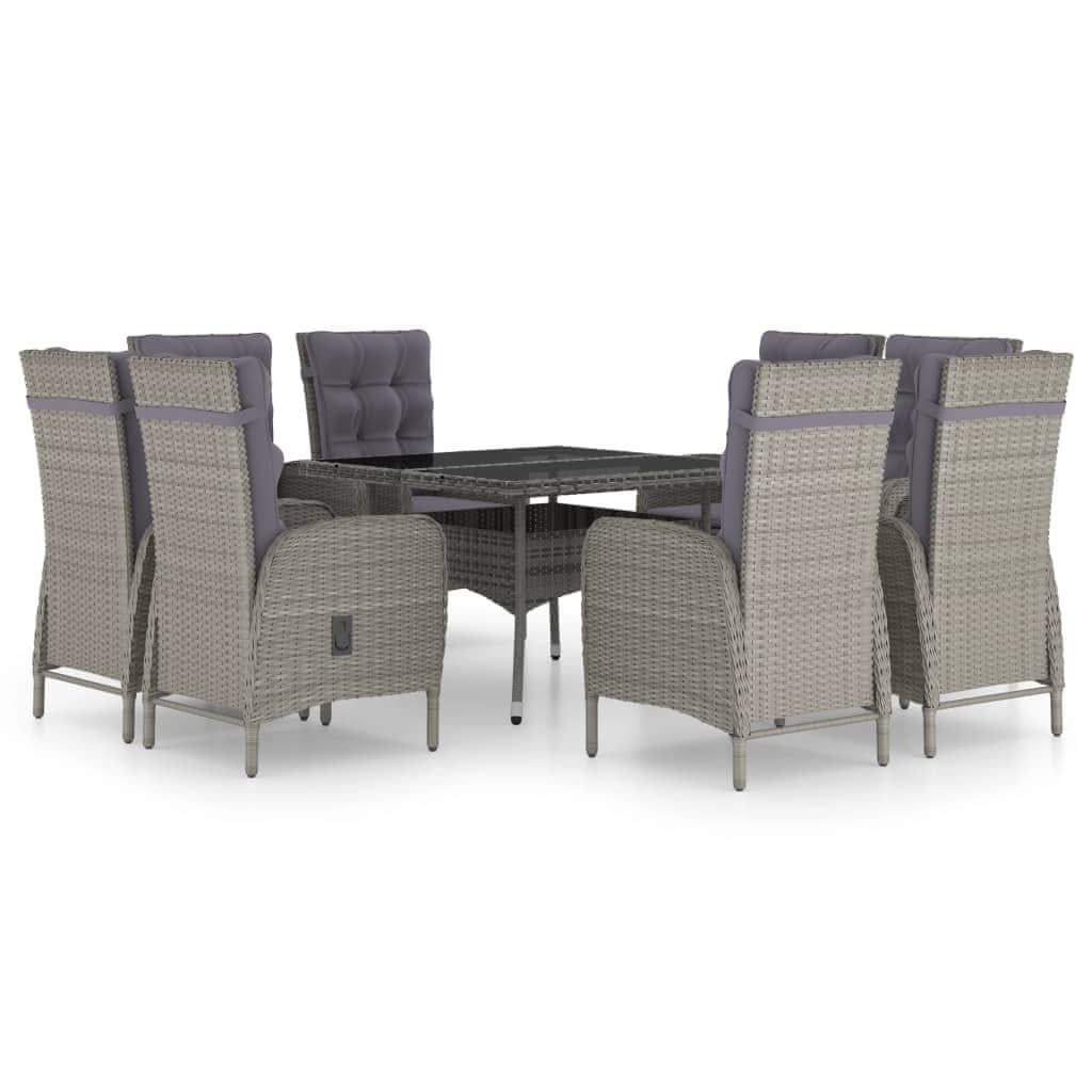Vidaxl 9-dijelni vrtni blagovaonski set od poliratana i stakla sivi