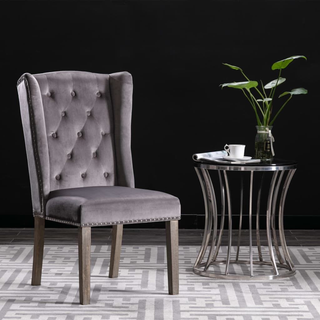 Vidaxl Blagovaonske stolice 4 kom sive baršunaste