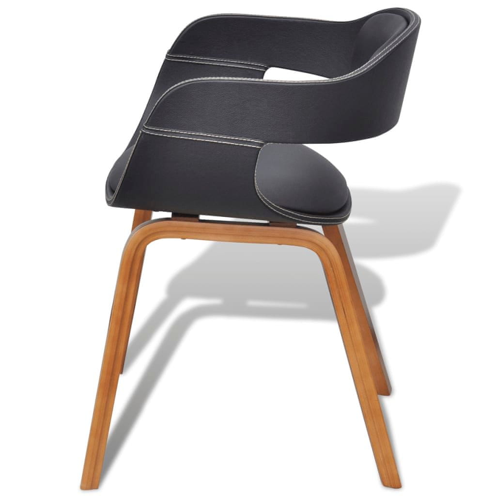 Vidaxl Blagovaonske stolice od zaobljenog drva i umjetne kože 4 kom crne