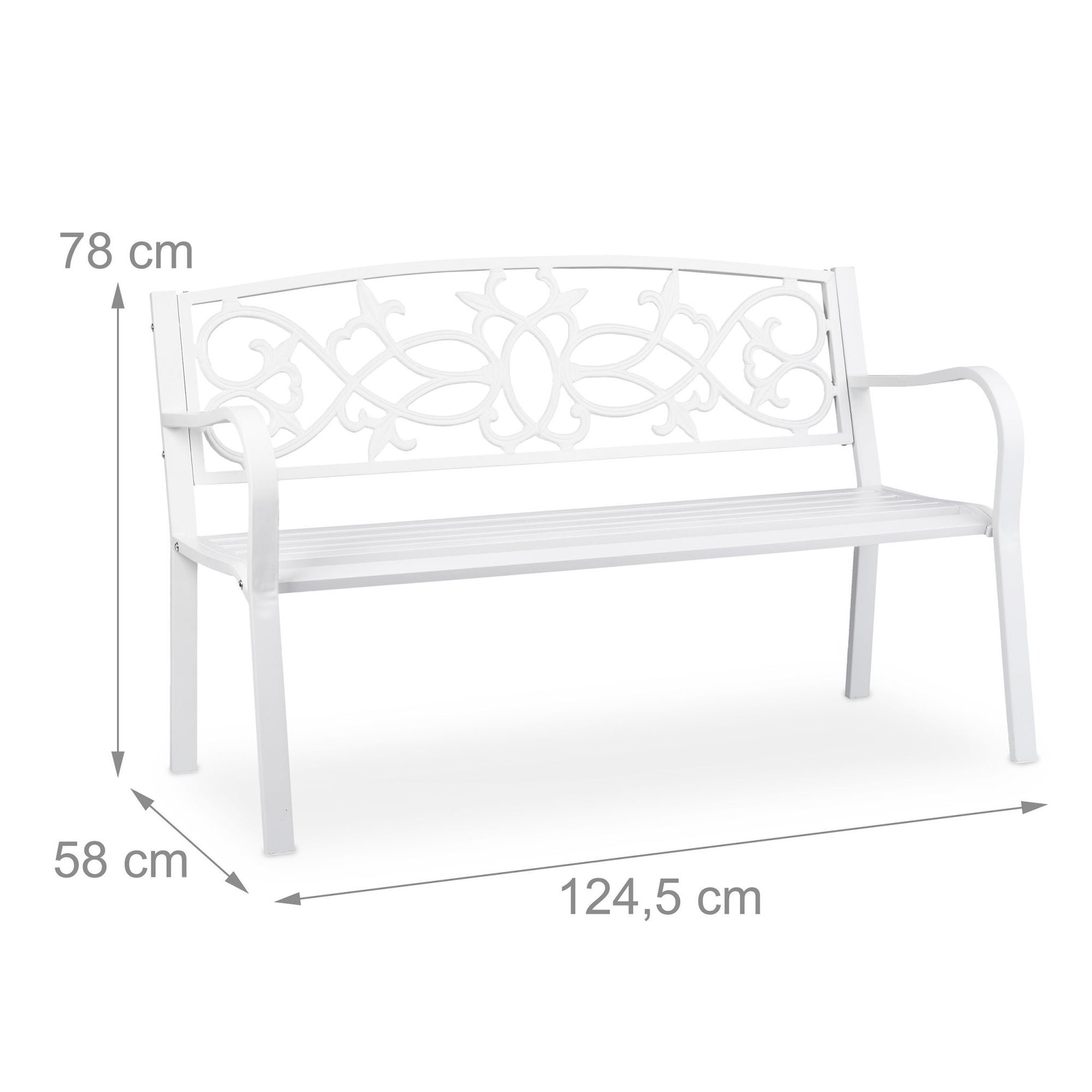 Ova elegantna vrtna klupa u vintage bijeloj boji savršen je dodatak za vaš vrt, balkon ili terasu. S dovoljno prostora za dvoje, pruža udobnost za opuštanje ili razgovore na otvorenom. Izrađena od izdržljive konstrukcije, klupa je idealna za dugotrajnu vanjsku upotrebu.
