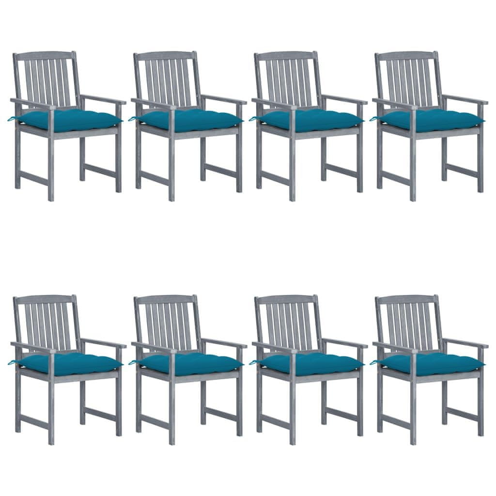 Vidaxl Vrtne stolice s jastucima 8 kom sive od masivnog drva bagrema