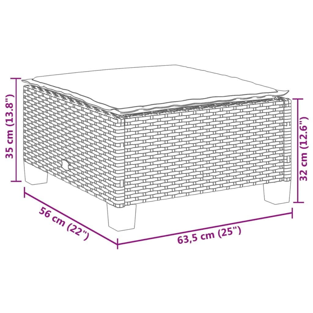 Vidaxl Vrtni tabure s jastukom sivi 63,5x56x32 cm od poliratana