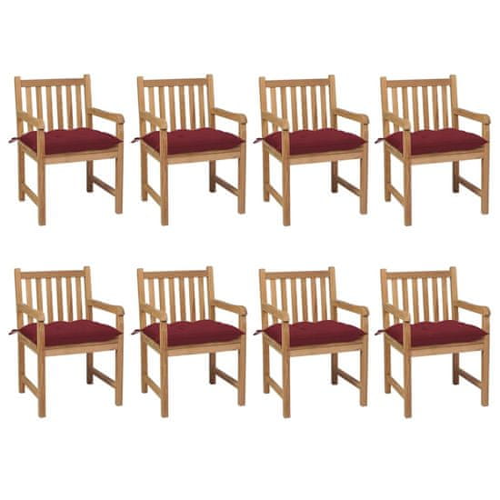 Vidaxl Vrtne stolice s jastucima boje vina 8 kom od masivne tikovine